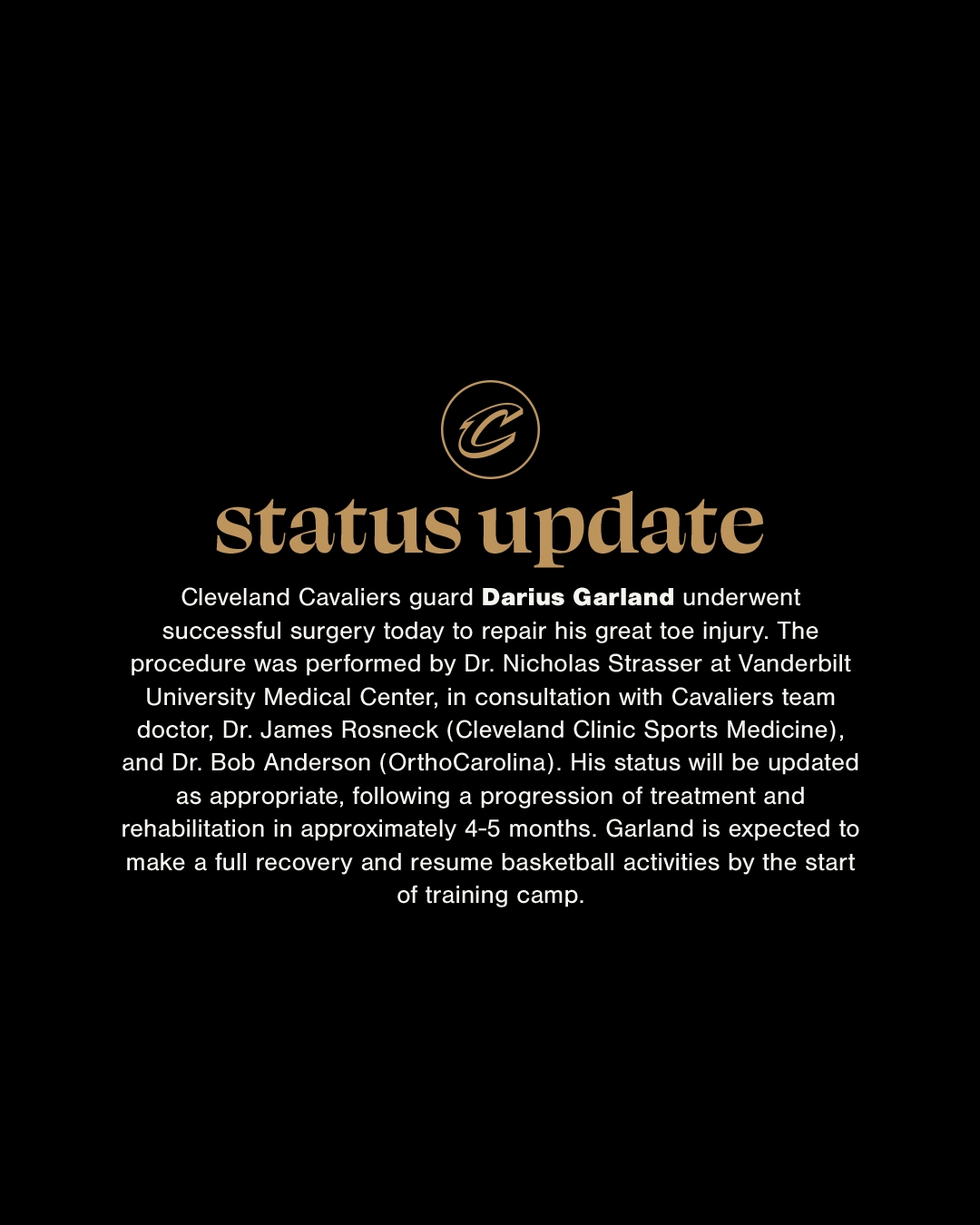 06月10日讯 骑士官方宣布,加兰成功接受了修复大脚趾伤势的手术。据报道,加兰将至少休息大约4-5个月,治疗和康复进展将适时更新。加兰有望在新赛季训练营开始前恢复篮球活动。加兰本赛季常规赛期间场均可以得到20.6分2.9篮板6.7助攻1.2抢断;后因脚趾伤势只打了5场季后赛,场均可贡献18分2.2篮板5.2助攻。